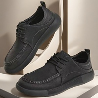 Zwarte Heren Sneakers Casual Flats Vierseizoenen Casual Leren Schoenen Met Dikke Zolen Casual Herenschoenen Trendy Schoenen