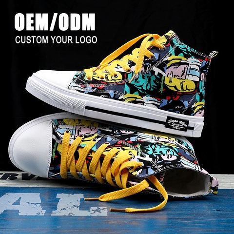 Hoge Top Unisex Heren Casual Schoenen Mode Graffiti Canvas Gevulkaniseerde Sneakers Heren Platte Schoenen Herfst Winter Heren Hoge Sneakers